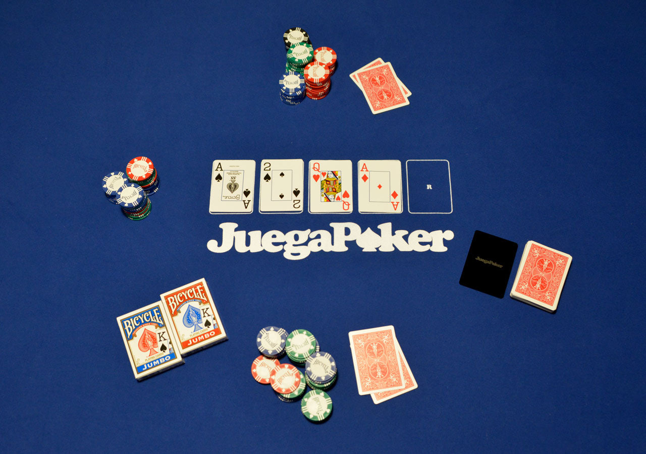 El estampado JuegaPoker fue diseñado para facilitar el entendimiento del juego Texas Hold'em Poker. Cada contorno de baraja representa una etapa del juego (Flop, Turn, River), ideal para quienes también están comenzando en este juego.