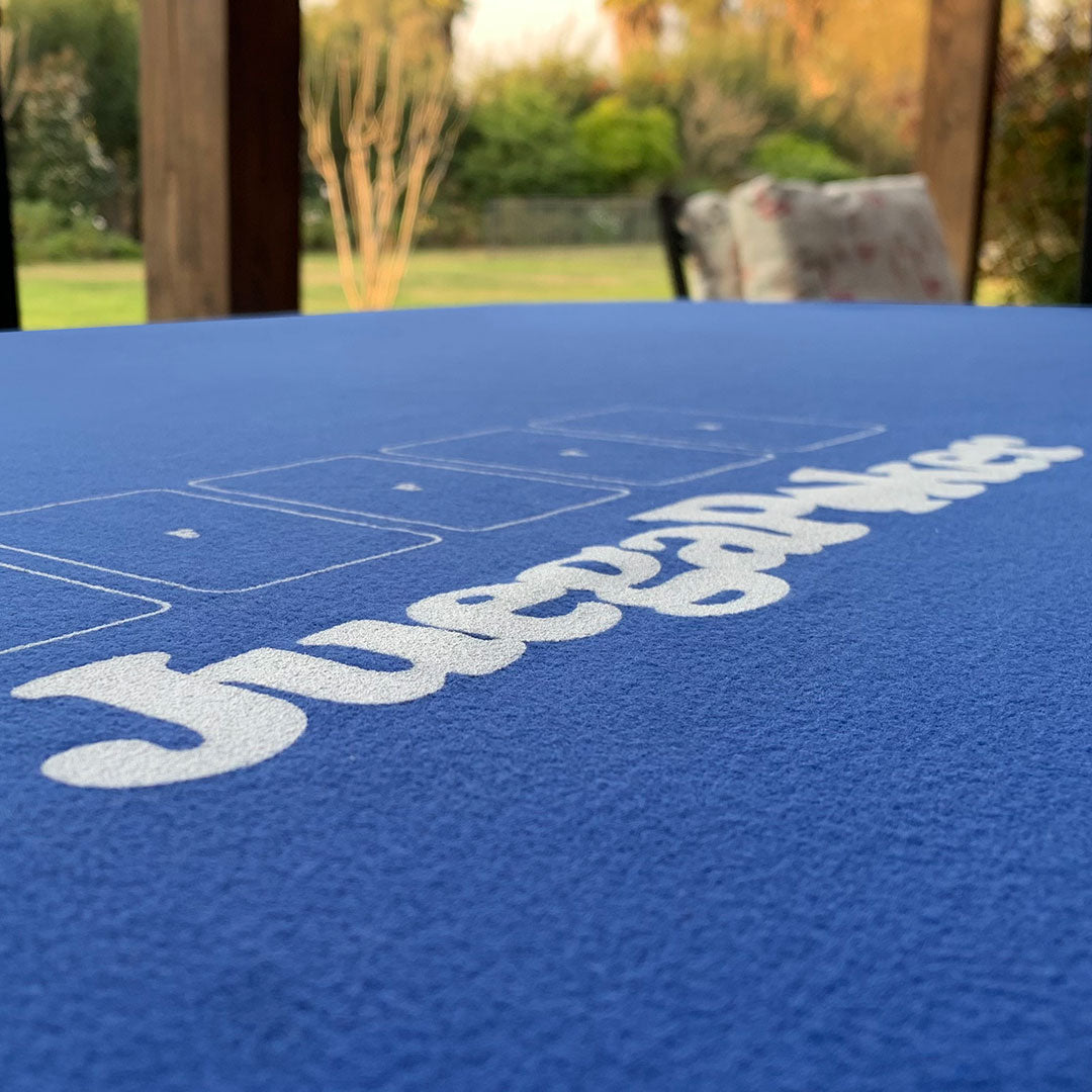 Partimos creando prototipos de paños estampados, en diferentes telas y colores, y llegamos a la conclusión que azul y verde eran los indicados. Muy influenciados además por el boom de los torneos en línea en la primera década del 2000. El borde elasticado ajustable redefinió la forma en que usamos las cubiertas para diferentes juegos de mesa. Actualmente sumamos Negro Grafito y Burdeo Tinto. Elegancia pura.