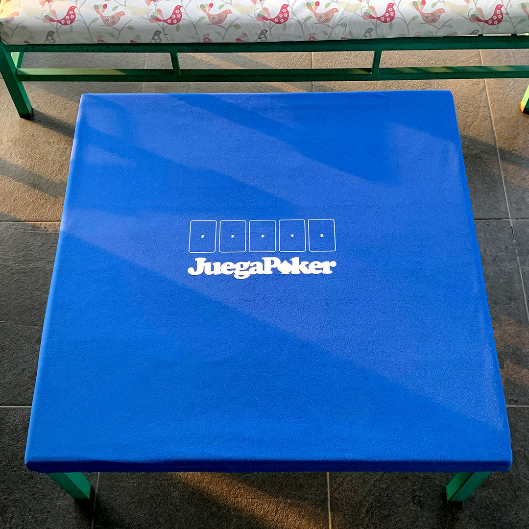 Paño cuadrado para Poker 130 x 130 cms, estampado con los contornos para las rondas de Flop, Turn y River. Un paño único en su clase, ya que puede ‘envolver’ la mesa, gracias a su borde elasticado y dos puntos de tensión que permiten adaptar el paño y estirarlo uniformemente, facilitando así el movimiento de fichas, barajas, dados y otros accesorios. Diseñado para quienes buscan una mejor experiencia de juego en la casa, con amigos o en familia.